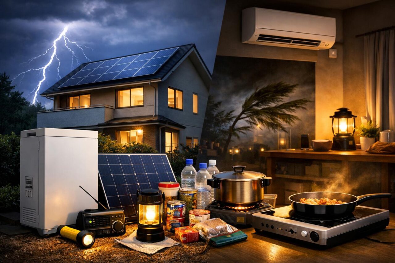 「地震や台風による停電対策として、家庭用蓄電池は本当にいる?いらない?」導入コストが高額なため、実際に価格に見合うだけのメリットがあるのか迷っている方は多いのではないでしょうか。結論から言えば、在宅避難を想定する場合や太陽光発電を導入している家庭にとって、蓄電池はライフラインを維持するために非常に有効な設備です。しかし、機種の選び方を間違えると「停電時にエアコンが動かない」「IHが使えず料理ができ … 続きを読む 蓄電池は停電に本当に役立つの?動く家電・動かない家電一覧